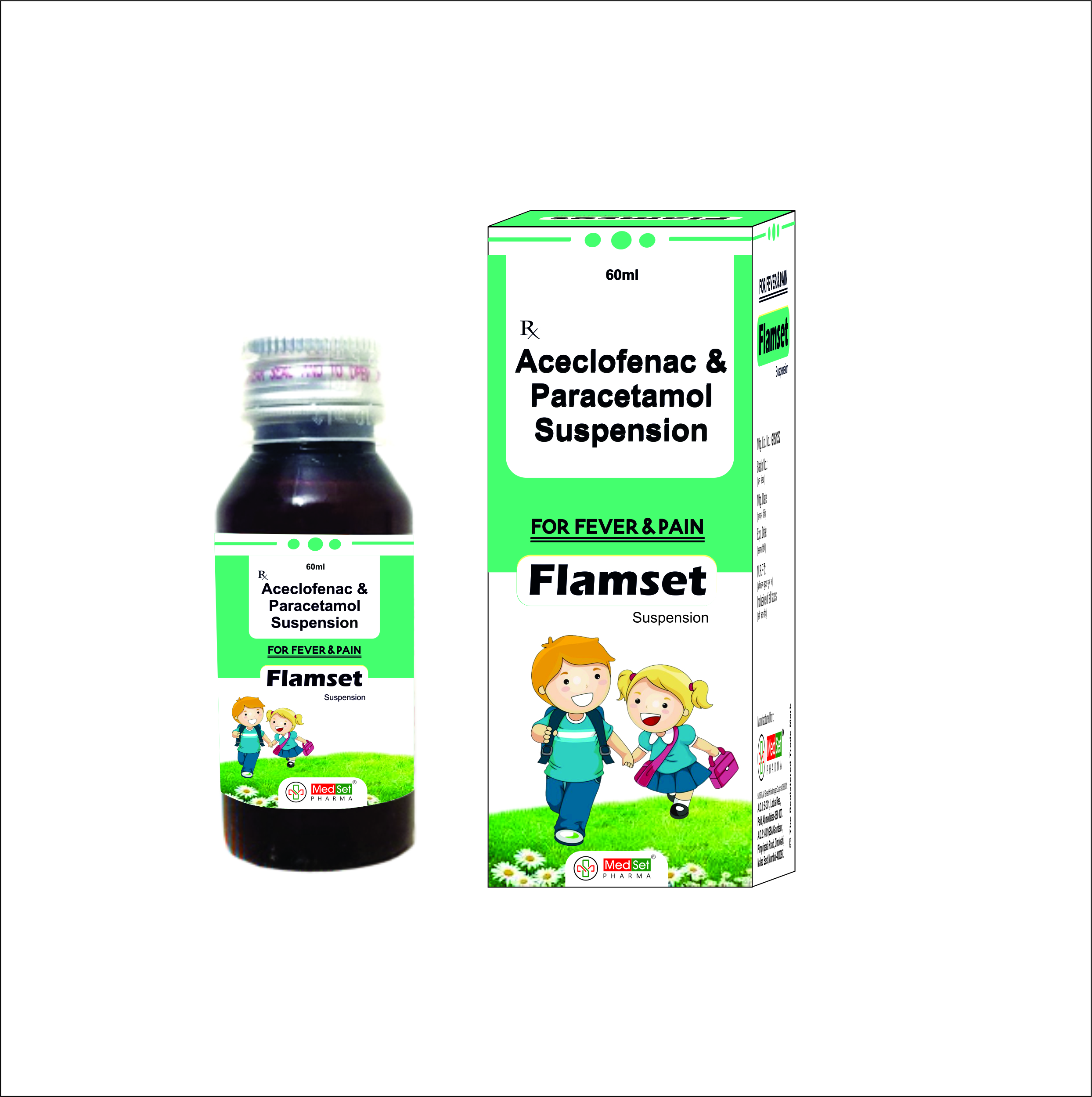 FLAMSET SUSPENSION offers safe and effective relief from pain, inflammation, and fever with the combined power of Aceclofenac IP and Paracetamol IP ideal for pediatric and adult use.