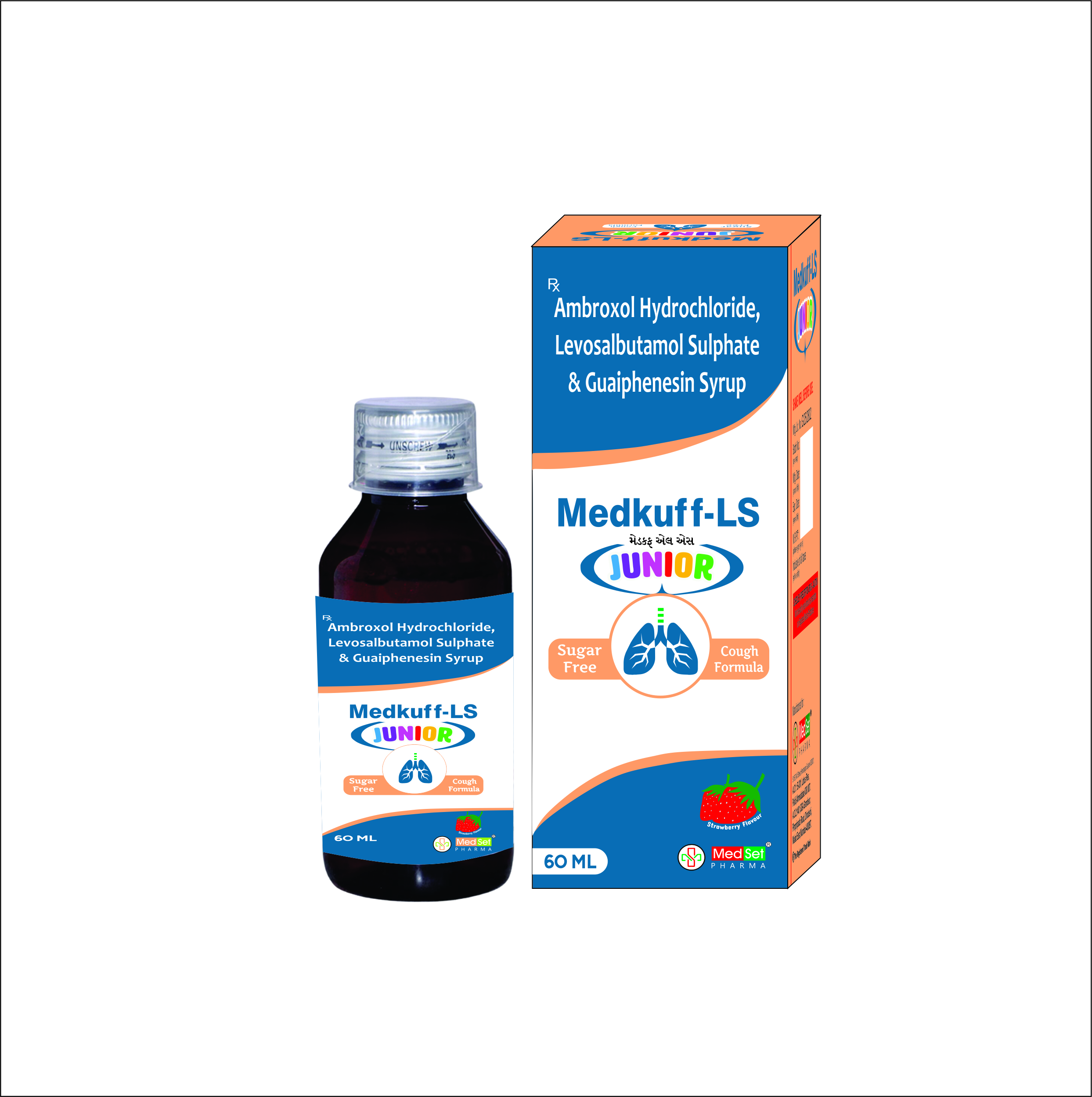 MEDKUFF-LS JUNIOR (Sugar Free) is a pediatric cough syrup specially formulated to provide effective relief from productive (wet) cough and respiratory congestion in children. It helps loosen thick mucus, clear chest congestion, and ease breathing discomfort associated with cough, cold, and mild respiratory infections.