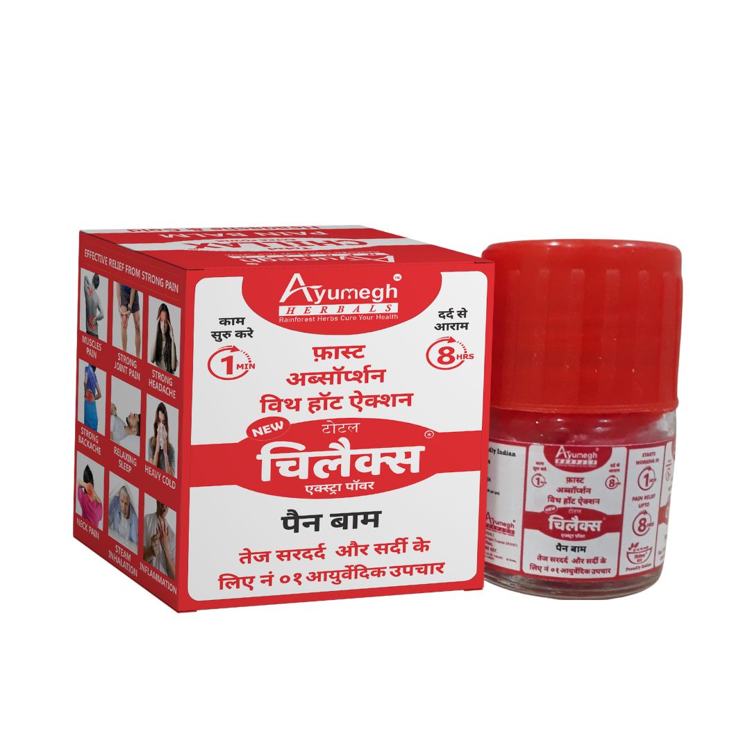 NEW TOTAL CHILLAX is an Ayurvedic cooling balm formulated to provide fast relief from headaches, body discomfort, nasal congestion, and mental fatigue. Its cooling herbal actives help relax the mind and body, ease tension, and restore freshness instantly. Compact and easy to carry, NEW TOTAL CHILLAX is ideal for quick relief anytime, anywhere.