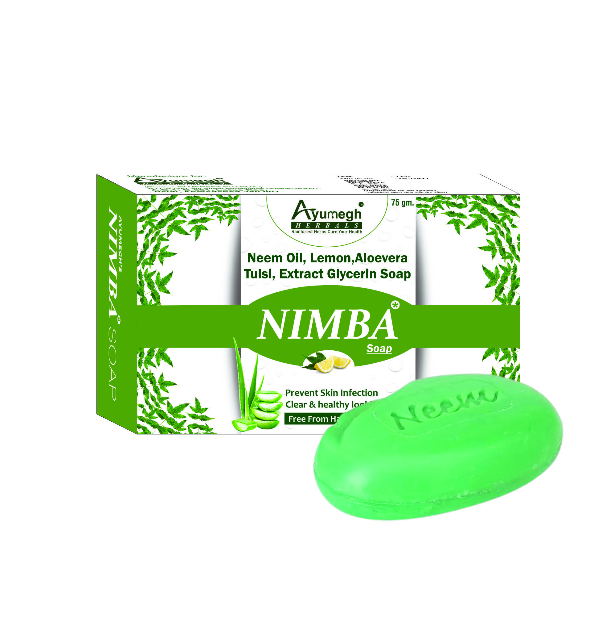 NIMBA SOAP is a premium Ayurvedic cleansing bar formulated with the purifying essence of Neem (Azadirachta indica), known traditionally for its powerful antibacterial and antifungal properties. This soap is designed to deeply cleanse the skin while maintaining its natural moisture balance. It effectively removes dirt, excess oil, and environmental pollutants that can clog pores and lead to skin imperfections.