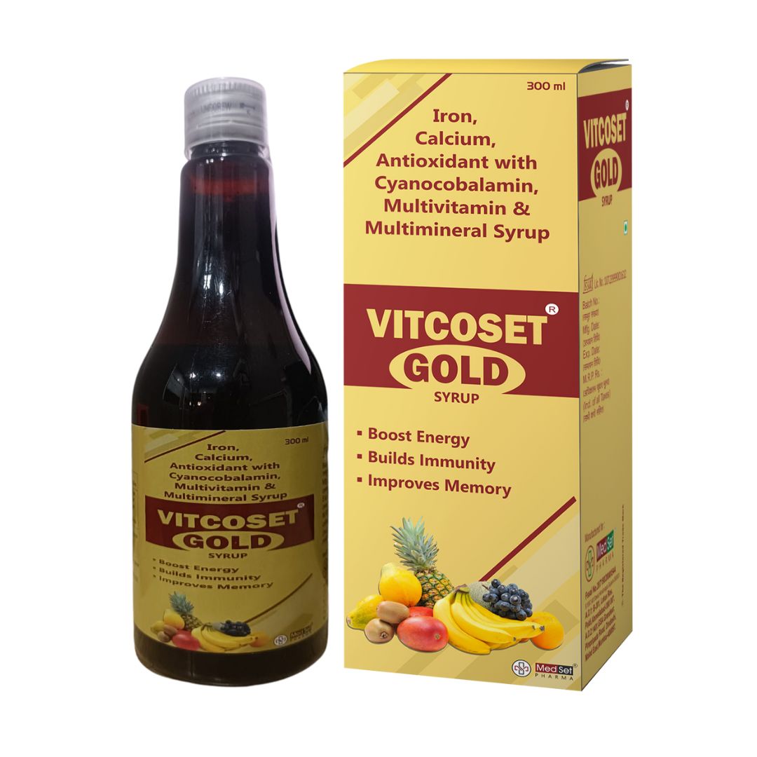 VITCOSET GOLD SYRUP (Sugar Free) is a premium liquid multivitamin that supports growth, boosts immunity, enhances energy, and promotes overall nutritional wellbeing.